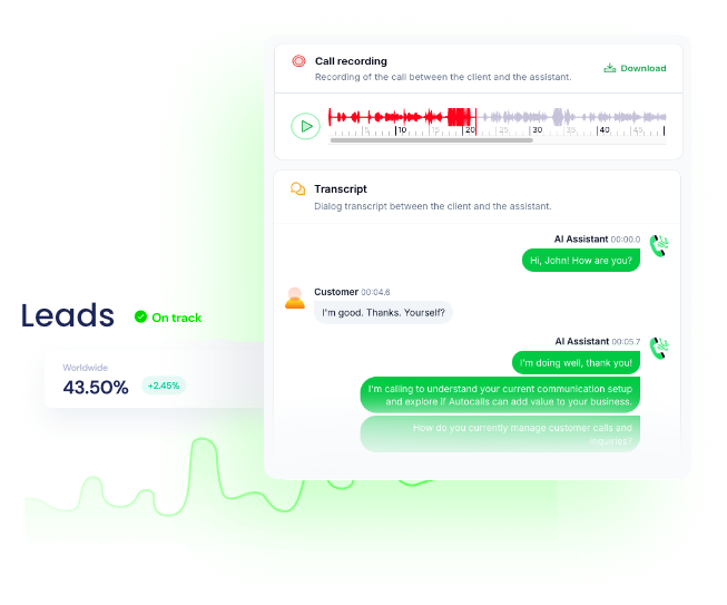 Transforma tu negocio y cierra tratos a la velocidad de la luz con nuestras soluciones de llamadas con IA. Únete a los pioneros que ya están liderando el mercado y maximiza tus ingresos hoy.